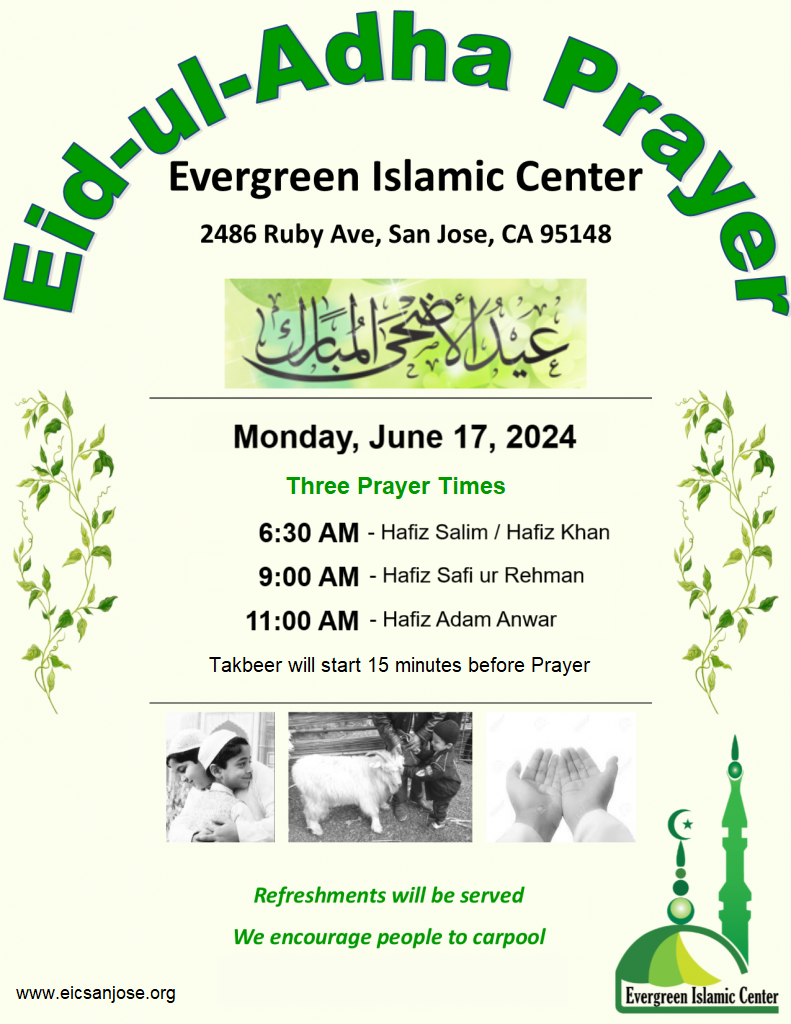 When June 17, 2024 6:00 AM - 12:00 PM Add To Calendar Download ICS Google Calendar iCalendar Office 365 Outlook Live Where Evergreen Islamic Center 2486 Ruby Avenue, San Jose, CA, 95148 Event Type Special Event Map Unavailable By Jawed Iqbal | June 17, 2024 | Special Event | 0 Comments |